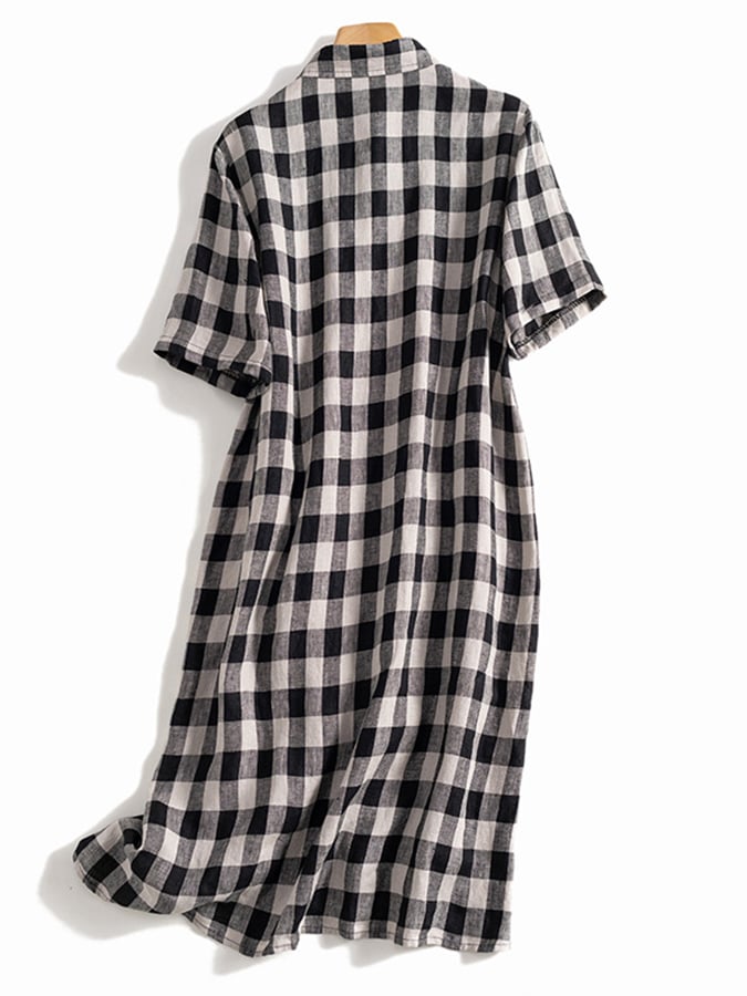 Artistic Retro Cotton Linen Check Dress