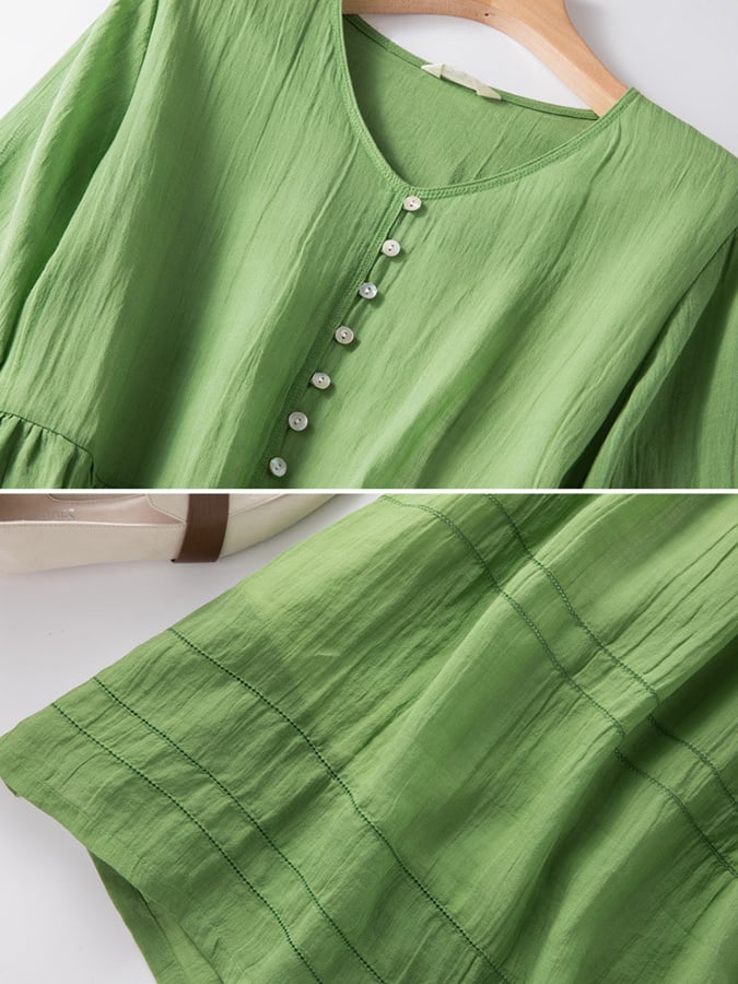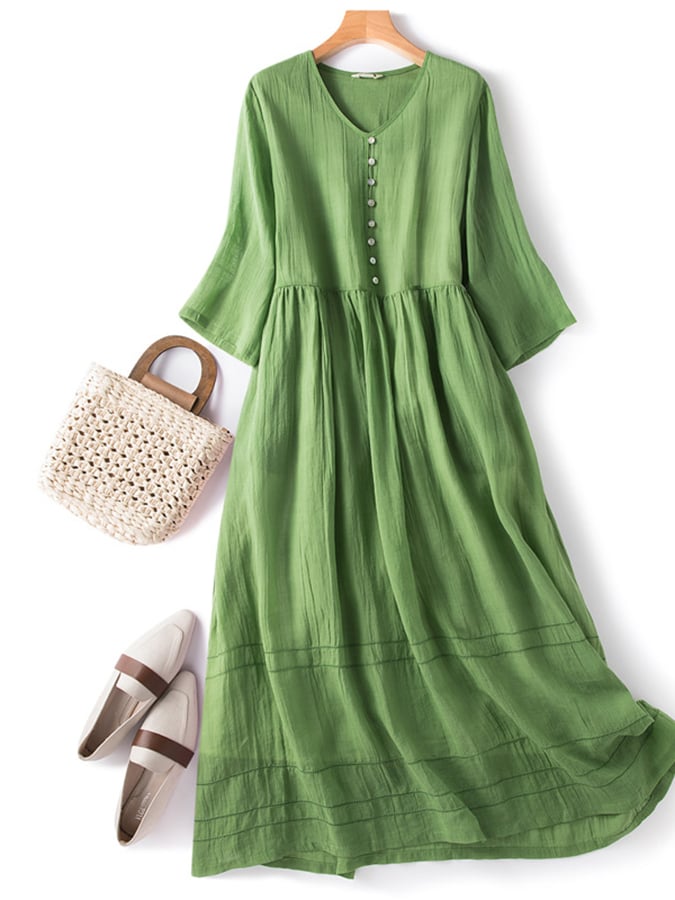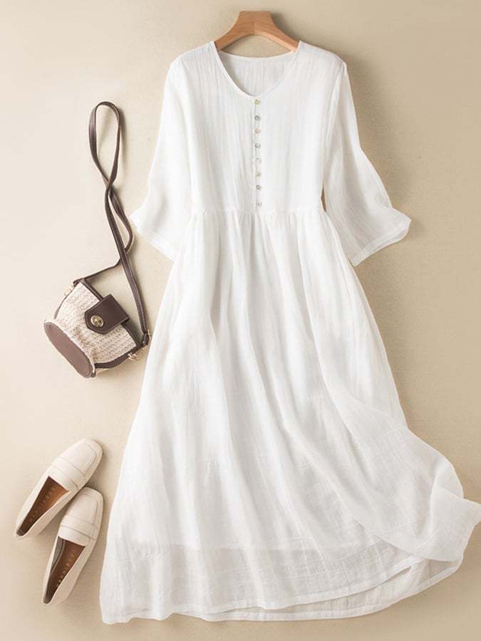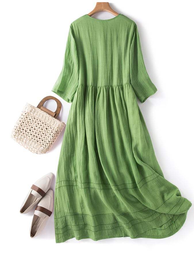 Cotton and Linen Double Layer Lined Solid Color Dress